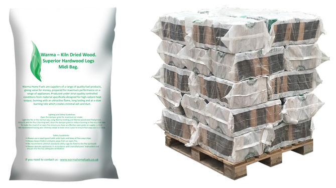 Within each bag of logs the logs are all kiln dried down to below 20% moisture content which will give a long slow burn and burn at maximum efficiency. Perfect for immediate burning on all stoves and open fires, providing that wonderful aroma only a log fire provides. They can be used on their own or with our other solid fuel options available. |